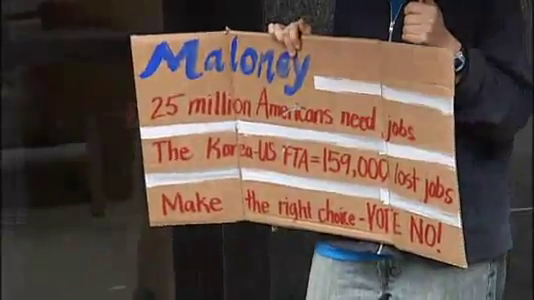 TradeJustice Activists Protest Carolyn Maloney's Support for Panama and South Korea Free Trade Agreement on Day of Congressional Vote