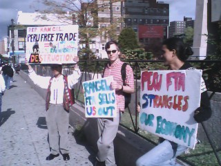 On Monday, October 1st at 9AM, members of the New York City People's Referendum on Free Trade held a protest at Charlie Rangel's office in Harlem's Adam Clayton Powell State Office Building to protest his role as the architect of democratic support for the Peru Free Trade Agreement.